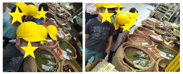 きな粉をつくるのに使う大豆を買いに行くことから始まりました。お買い物と聞いただけでテンションMAXです✨商店街にいざ出発すると…「お菓子買うん?」とすっかり豆のことを忘れていました!(笑) 誘惑のお菓子屋さんを通り過ぎて、お豆屋さんに到着しました。すると、入り大豆を発見👀「せつぶんのおまめください!」と大きな声で言えましたよ👏節分豆300gを無事に調達することができました。