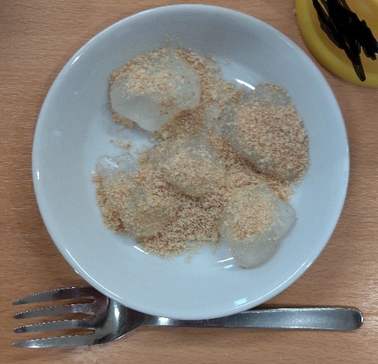 好きなだけ自分のマカロニにきな粉をかけていきました!欲張りさんがたくさんいましたよ(笑)