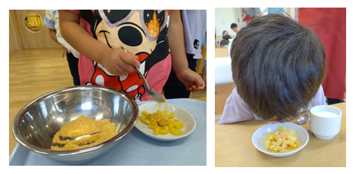 いつもよりもおかわりをする子がたくさんいました!自分で作ったおやつということで、美味しく感じたのかもしれませんね☺️