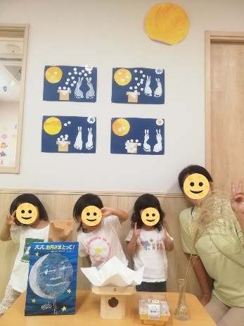 保育室にもお月様に関連する絵本を準備したり、制作をしたり、手遊びを楽しみながらこの日を楽しみにしていました。