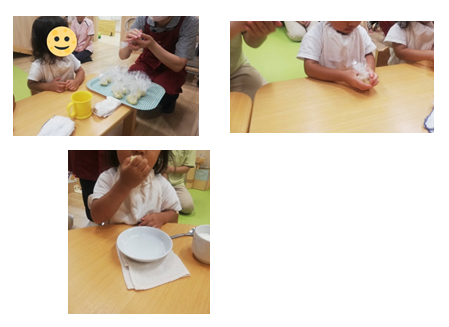 午後からはおやつの時間に、お餅ではなくお芋のお団子を給食先生とみんなで作りいただきました。