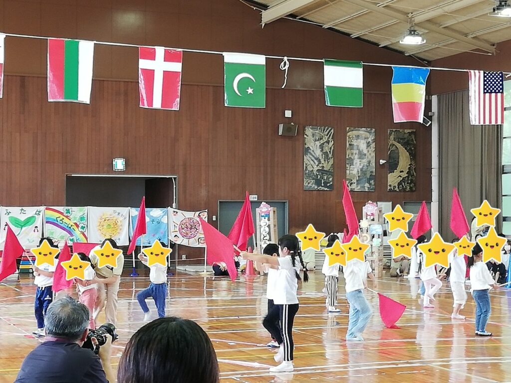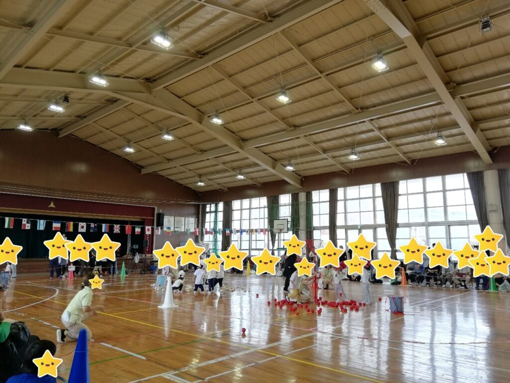 踊る踊る💃と思いきや曲が玉入れスタート!赤組と白組どちらも最後まで負けずに頑張っていましたよ。