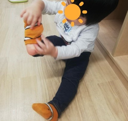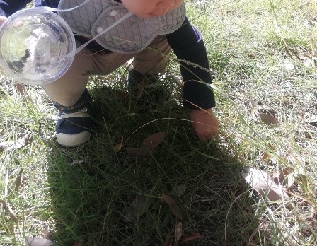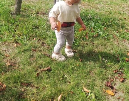 落ち葉にも注目していて、きれいな葉っぱがあるかな??と0歳児なりに選んでいる姿がとってもかわいいです。