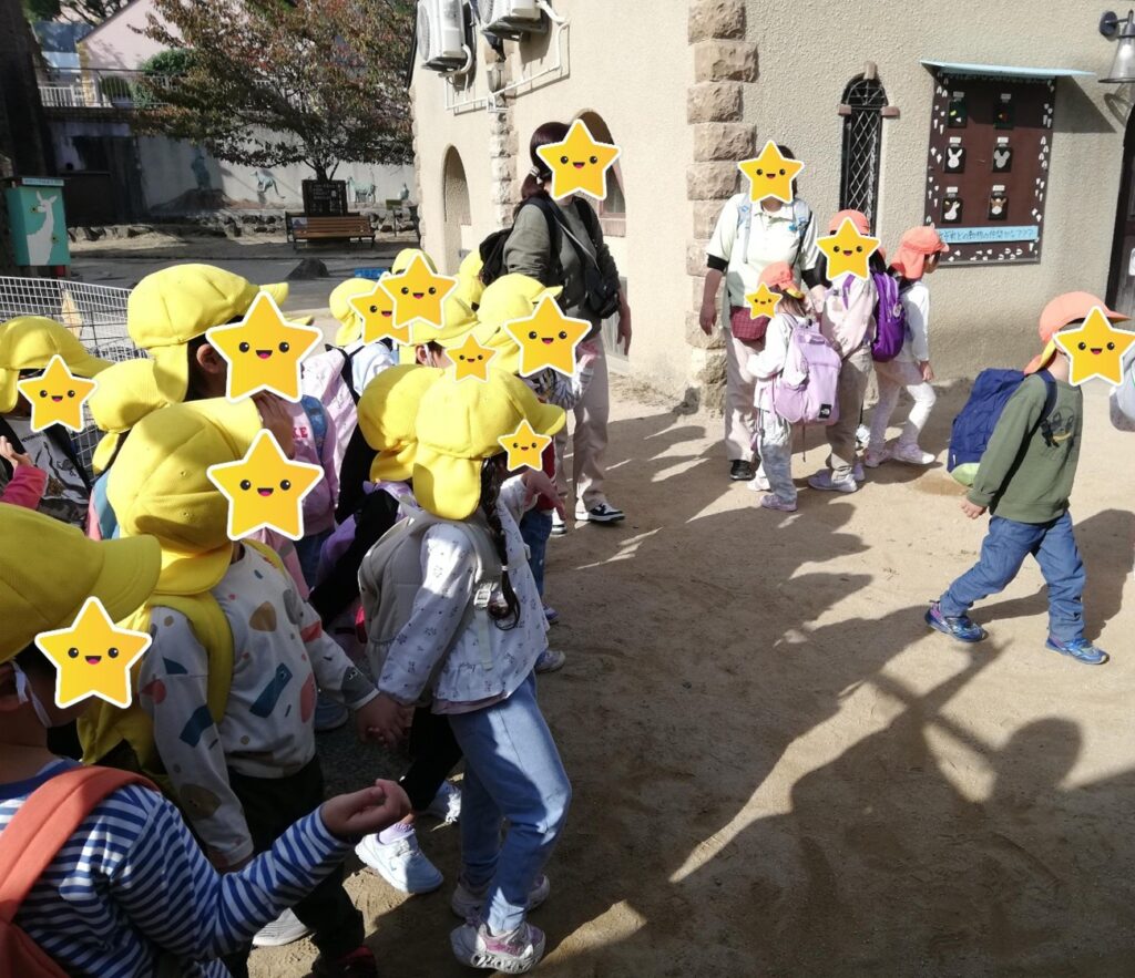 「もうすぐ遠足だね」「楽しみだね」と当日までずっと楽しみにしていたそら組さん。期待を膨らませながらお話を楽しむ中「今回はね、尼崎園のお友達だけじゃないんだよ、新大阪園と板宿園のお友達も一緒なんだよ」と言うと「ソォなの?」「楽しみ」とあまりピンときてないご様子でしたが楽しみな気持ちは変わらずだったようです。