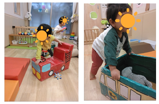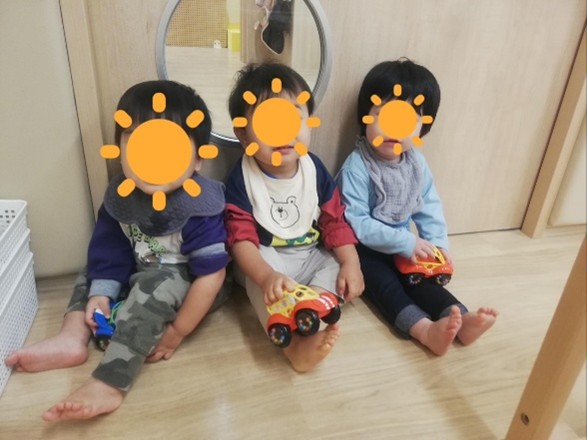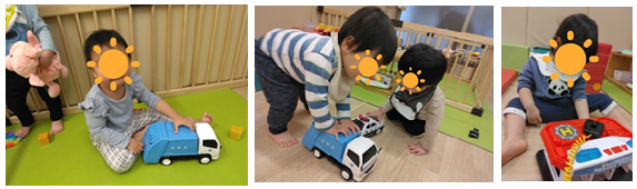 お部屋の環境も、子どもたちの興味に応じて変えているので、乗り物がたくさん!!
