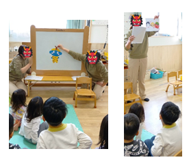 可愛い鬼さんが登場して、ツノのファッションショーをしたり、パンツクイズを楽しだりしましたよ。