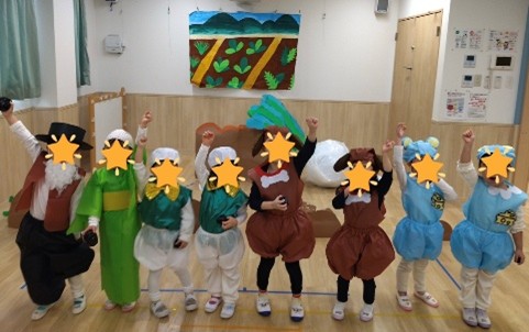 また終わってからは全園児で好きな役になって劇をする、生活発表会ごっこも楽しみますよ。