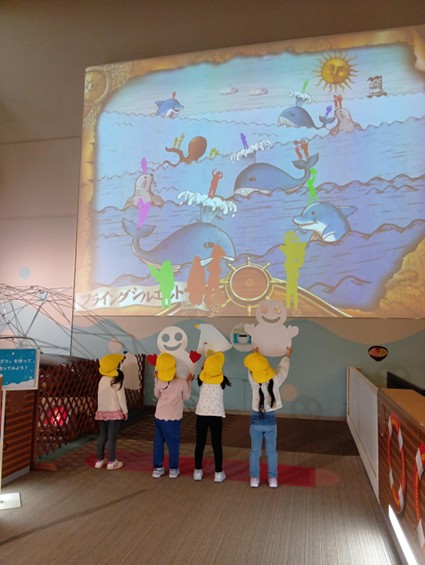 キッズプラザの紹介ビデオをみんなで見て、グループごとに分かれて館内をまわるルートを決めましたよ。「ここにいきたい」「たのしそう」とグループごとの話し合いで大盛り上がり。どのグループからも楽しそうな元気いっぱいな声が聞こえてきました。